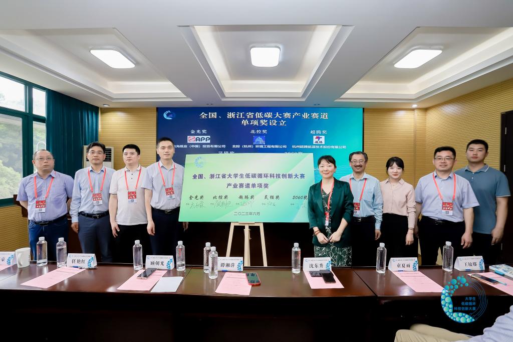 据悉,浙江省大学生低碳循环科技创新大赛是由浙江省循环经济学会、浙江省绿色科技文化促进会主办,由浙江省高等学校交通运输与能源类专业教学指导委员会、浙江省科协资源环境学会联合体指导,由浙江科技学院承办的跨学科类大学生课外科技创新大赛。为能够进一步鼓励学生的创作热情和适应行业需要,本次比赛新设立产业赛道单项奖,由金光纸业(中国)投资有限公司、北控(杭州)环境工程有限公司、杭州超腾能源技术股份有限公司、灵猫科技有限公司、二零六零影响力科技(杭州)有限责任公司共同发起设立。(大赛秘书处 张琰)