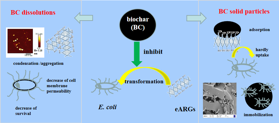 生物质炭开发与利用科研小组,以胞外抗生素抗性基因为切入点,从环境界面化学的角度,较系统地研究了生物质炭对水土介质中胞外抗生素抗性基因的迁移和水平基因转移行为的阻控作用及机制,为利用生物质炭技术阻控环境中抗生素抗性基因的传播扩散提供了重要理论依据。相关研究论文“Pyrolysis temperature affects the inhibitory mechanism of biochars on the mobility of extracellular antibiotic resistance genes in saturated porous media(点击阅读)”和“Biochar effectively inhibits the horizontal transfer of antibiotic resistance genes via transformation(点击阅读)”分别在环境领域著名期刊《Journal of Hazardous Materials》(中科院一区TOP,IF=14.2)2022年第439和第423期上发表。漫画人