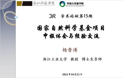 召开2022国基申报动员会暨第15期 “3R”学术论坛,邀请了学院获得2021年度国家自然科学基金项目资助的三位老师鲁祎、常紫阳和李勇超进行经验分享与交流,特邀浙江工业大学博士生导师杨晋涛教授做题为“国家自然科学基金申请体会交流”的主题报告,胡志军副院长和二十余位教师参加了报告会。