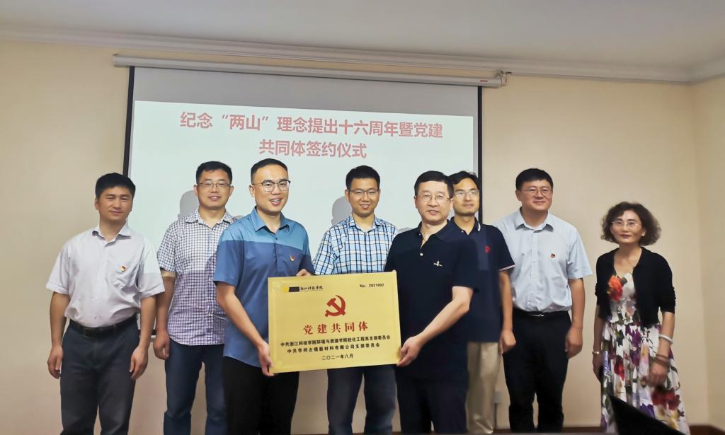 本次活动以践行“两山”理念、发展绿色产业、助力乡村振兴为主题,环境工程系党支部与衢江区杜泽镇桥王村党支部签订校地党建共同体合作协议,支部党员张进、柴彦君、李子川等做党建共同体专题报告发言。与会人员就如何凝聚双方党建力量更好地引领桥王村茭白、水稻种植发展而进行积极讨论与交流。轻化工程系党支部与华邦古楼新材料有限公司党支部签订校企党建共同体合作协议,会后学院党总支书记李俊、副院长胡志军和支部党员郭大亮等实地走访华邦鼓楼新材料有限公司,与企业相关负责人围绕绿色生产和新产品开发进行了研讨,并就建立党建共同体定期沟通机制达成共识。
