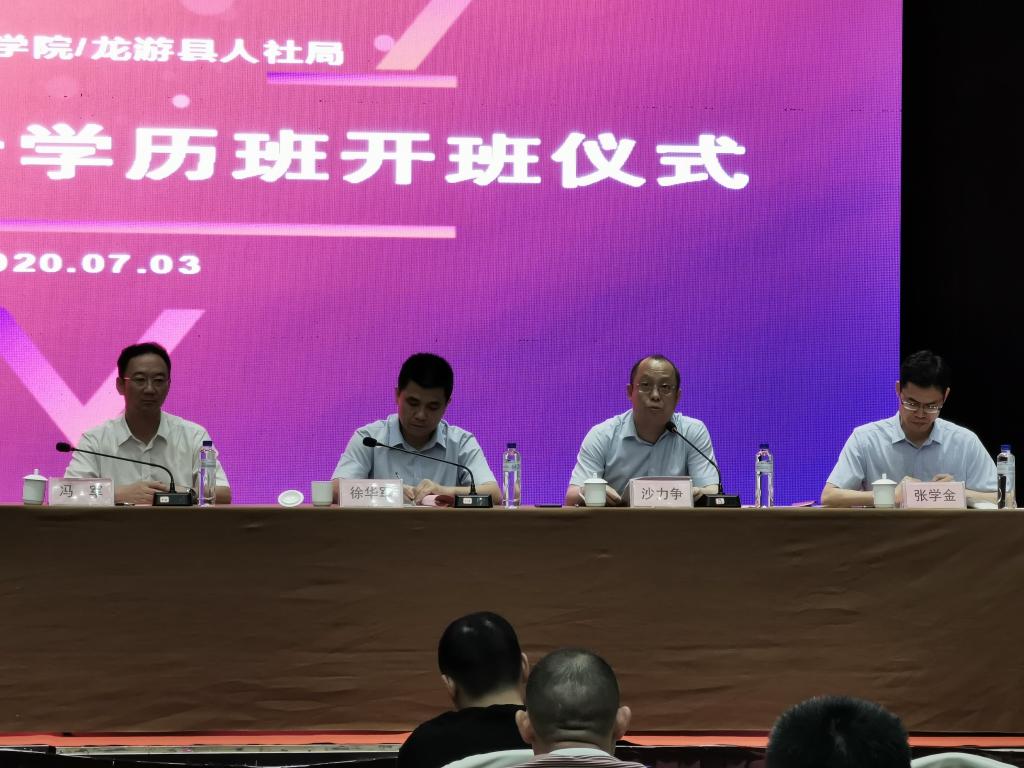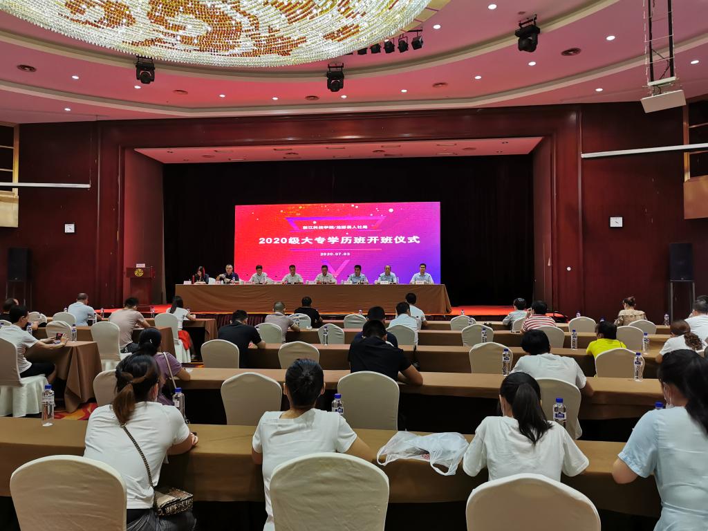 院长/党总支书记沙力争、副院长张学金,以及龙游县委常委、常务副县长江建新,县人社局党组书记、局长夏浩波,副局长方爱芸出席开班仪式,仪式由龙游县办副主任孙俊主持。2020级大专班的70余名新生参加了开班仪式。
