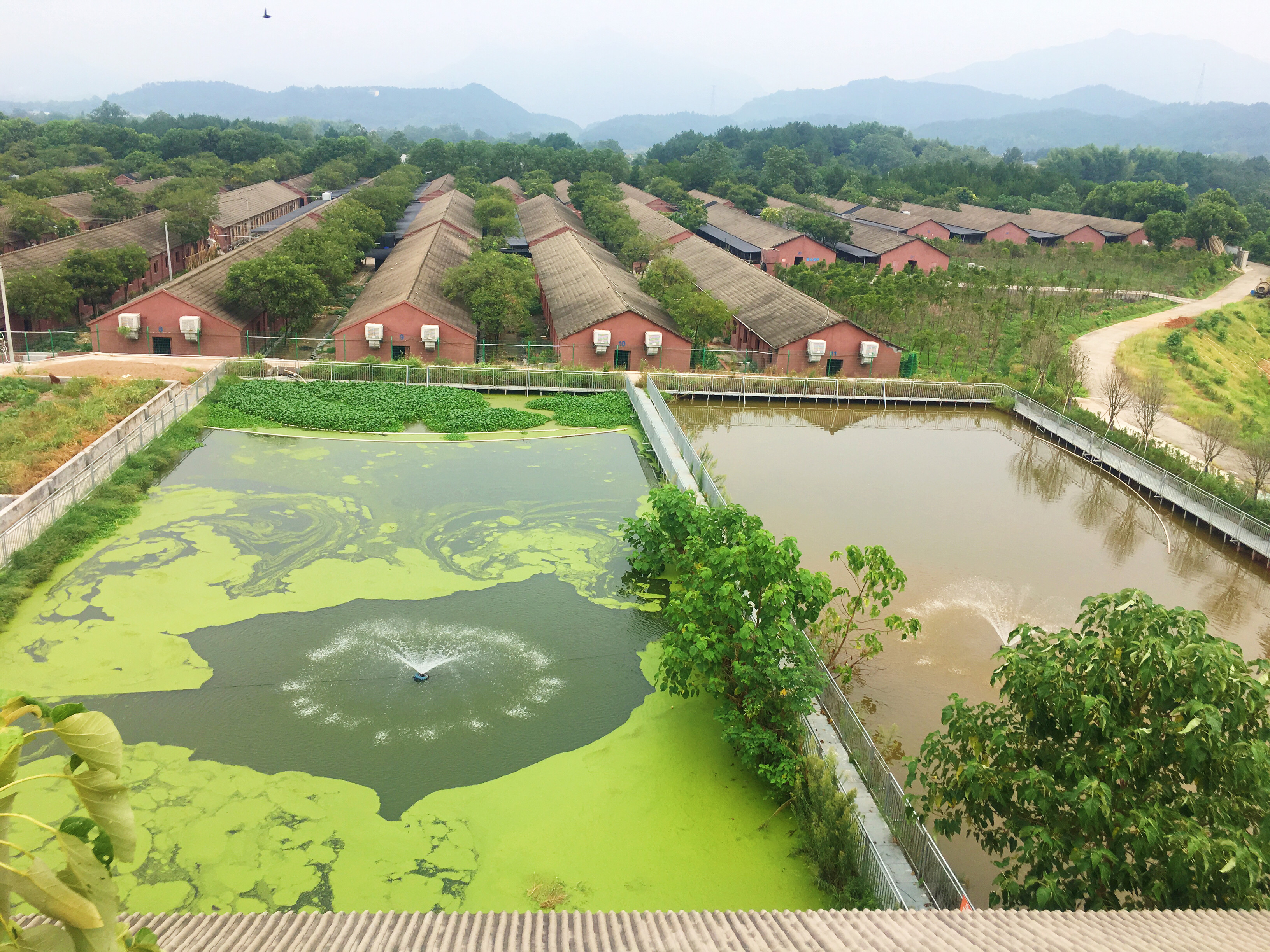 环境研究院与当地产研合作打造生态牧场的基地。踏入牧场,实践团员们首先被牧场后的水库风景所吸引,湖水清澈,偶有水鸟掠过,显得别有趣味,任谁都想不到这里竟是年出栏超过3万头生猪的大型养殖场。牧场负责人秦唐勇介绍说;“这全得益于我们特有的沼液浓缩处理技术,养殖废水通过沼液浓缩技术处理,分为浓缩液和透过液,浓缩液作为液体有机肥,可用于灌溉农作物,透过液可以用于清洗或者养鱼。既帮农场解决了不必要的消耗,又增加了一笔收益。”近几年,牧场引进了环境研究院教授在沼液施用检测和精准施用技术方面的成果,实现技术突破,减少了资源的浪费,并为衢州市的畜牧业转型贡献了一份力量。