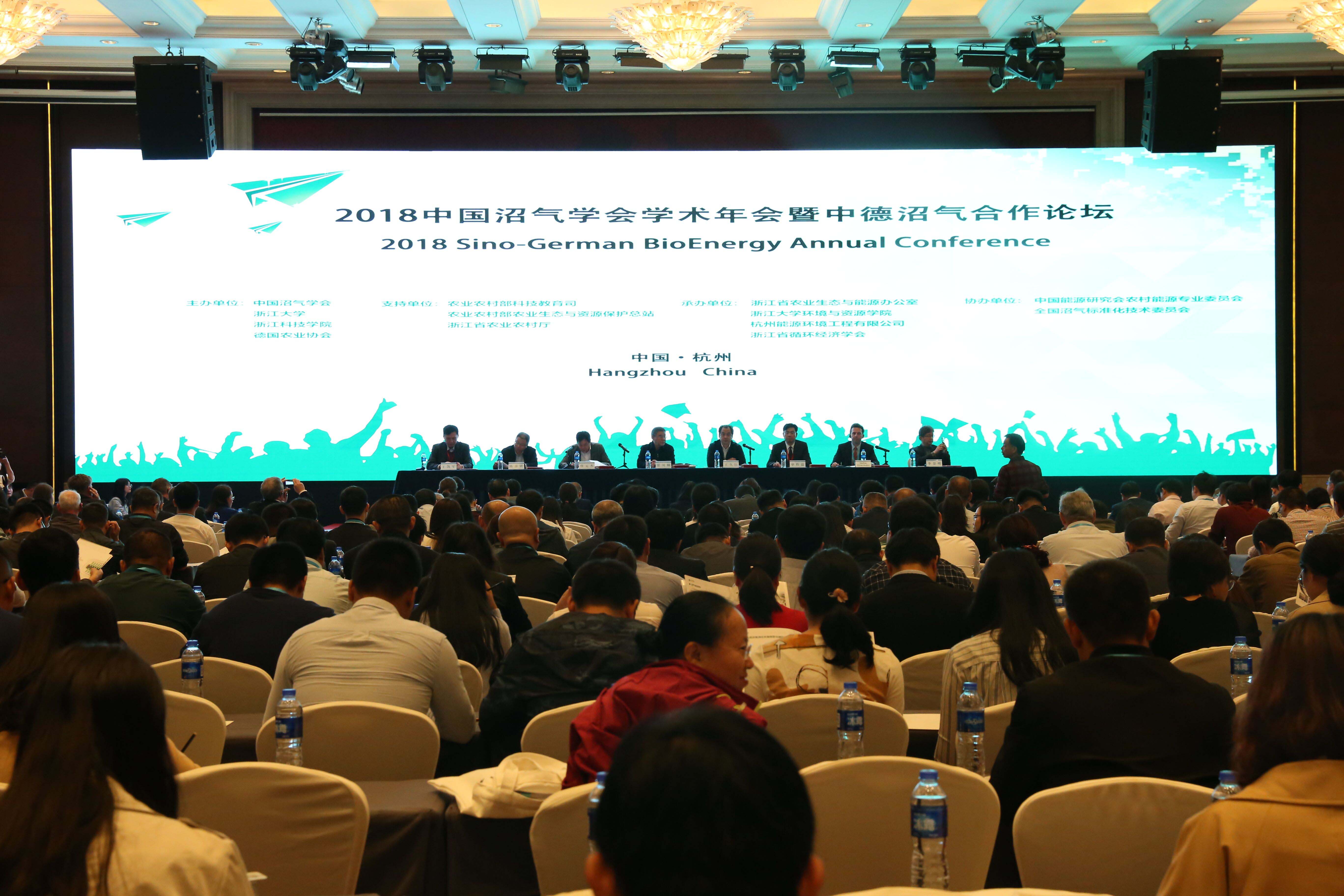 、杭州能源环境工程有限公司共同承办,中国能源研究会农村能源专业委员会、全国沼气标准化技术委员会协办。农业农村部科技教育司原司长、中国沼气学会理事长张凤桐、农业农村部农业生态与资源保护总站站长王久臣、浙江省农业农村厅总农艺师蔡元杰、浙江科技学院副校长单胜道、农业农村部科教司能源生态处处长陈彦宾、德国农业部能源司处长Stefan Meierhofer、农业农村部农业生态与资源保护总站首席专家李景明出席开幕式并致辞,中国沼气学会秘书长王凯军主持开幕式。来自中德沼气工程相关领域的专家、学者、企业代表等400余人出席此次盛会。