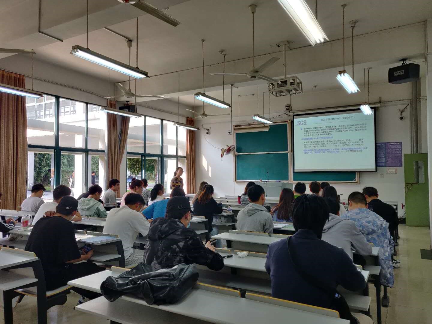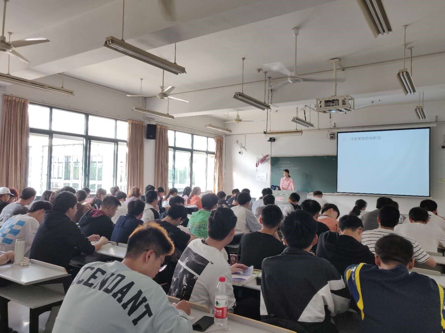 部分人数较少的班级,人员间隔情况做得较好。《大学物理B2》等课程,学生人数较多,无法做到座位隔开。