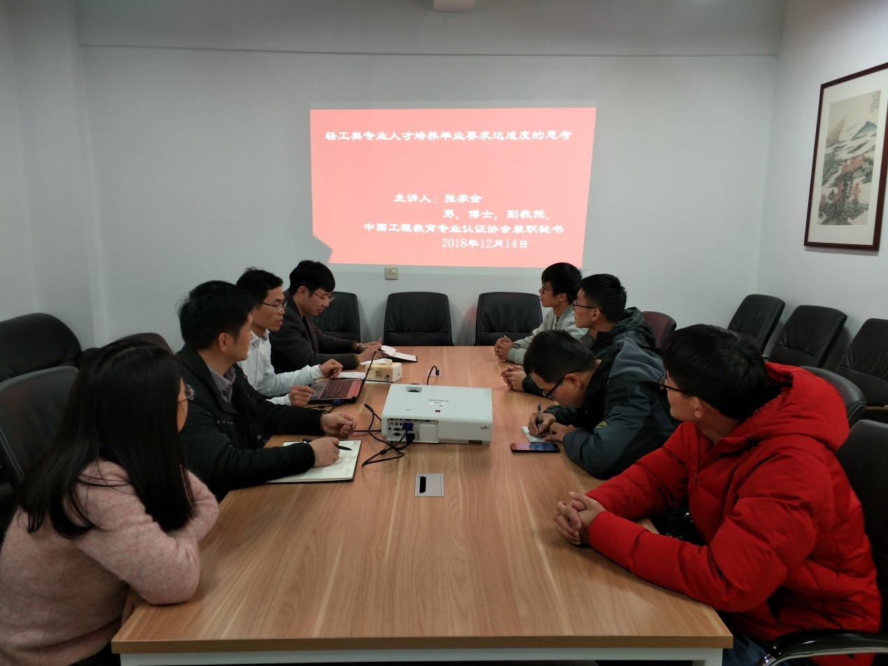 会议室609室进行了主题为“轻工类专业人才培养毕业要求达成度的思考”的报告,胡志军副院长、轻化工程系的老师及同学参加了本次活动。