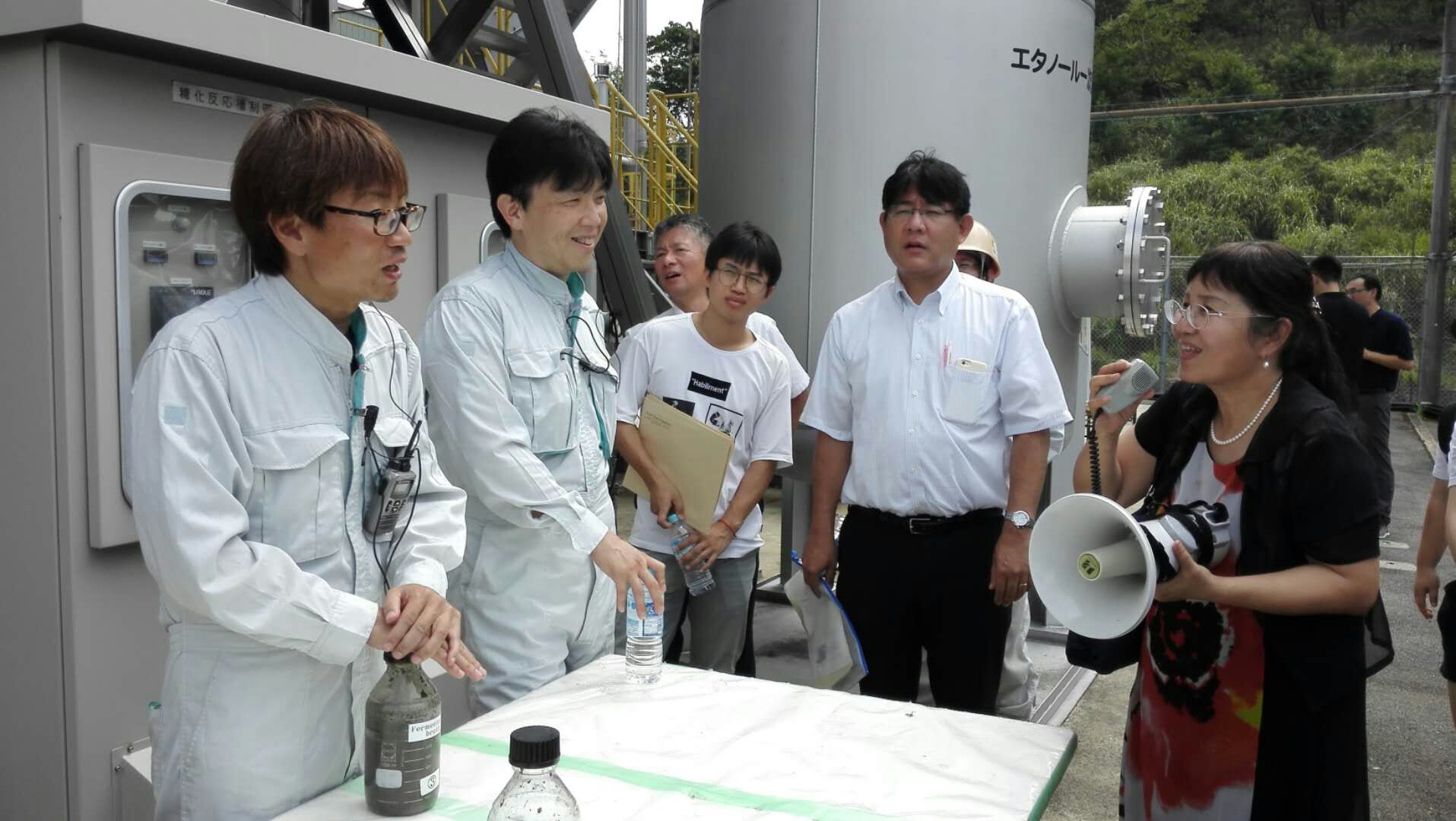 Phthalate (DBP) by Fe3O4 Nanoparticle-Immobilized Pseudomonas Sp. W1 and Its Application Potential in Wastewater Treatment》的报告。28日为主题参观,与会人员前往参观京都日立造船公司旗下乙醇发酵生产厂,该场以城市固废为主要原料,经垃圾筛分、制浆、同步糖化发酵和蒸馏等环节,获得纯度为50%以上的乙醇并进一步提纯。在参观过程中,通过与相关负责人的沟通、讨论,了解了本领域相关先进技术的最新实施现状及进展。本次日本之行拓宽了漫画人