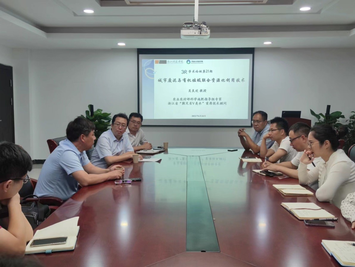 浙江省废弃生物质循环利用与生态处理技术重点实验室并为第21期“3R”论坛做题为“城市废泥与有机垃圾联合资源化利用技术”的学术报告,报告由刘赫扬院长主持,张进副院长、学院专业教师以及研究生等三十余人参会。