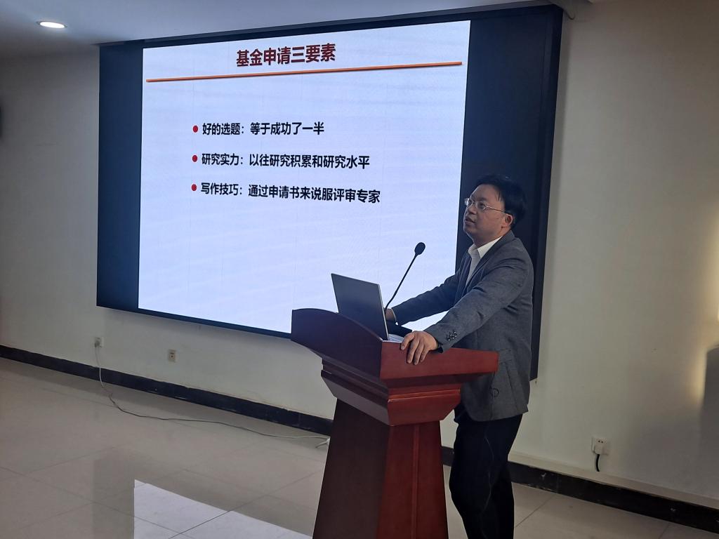 并作题为“国家自然科学基金项目申请的要点分析与个人体会”的学术报告,报告会由张进副院长主持,学院环境工程系和轻化工程系二十余位专业教师参加了报告会。