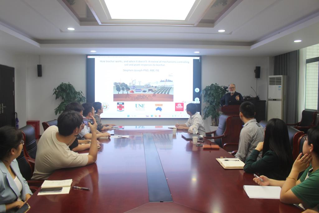 在学术报告中,Joseph教授首先介绍了土壤和植物对生物质炭的反应机制,指出需进一步研究生物质炭特性对根膜电位和微生物养分循环的影响并制定相应的生物质炭配方以满足特定土壤和环境限制;随后Joseph教授分享了个人在生物质炭研发与推广应用领域数十年深耕的研究成果和深刻见解,探讨了生物质炭与社会发展之间的关系以及未来生物质炭相关科技的发展趋势,介绍了人工智能、生物技术和可持续农业等领域对生物质炭发展的作用并提出了相应的指导建议。最后Joseph教授与参会师生进行了互动交流,重点强调了创新和可持续性在解决生物质炭推广方面的重要性,鼓励青年学者和研究生在生物质炭科学研究和实际应用等相关领域进行深入探索。