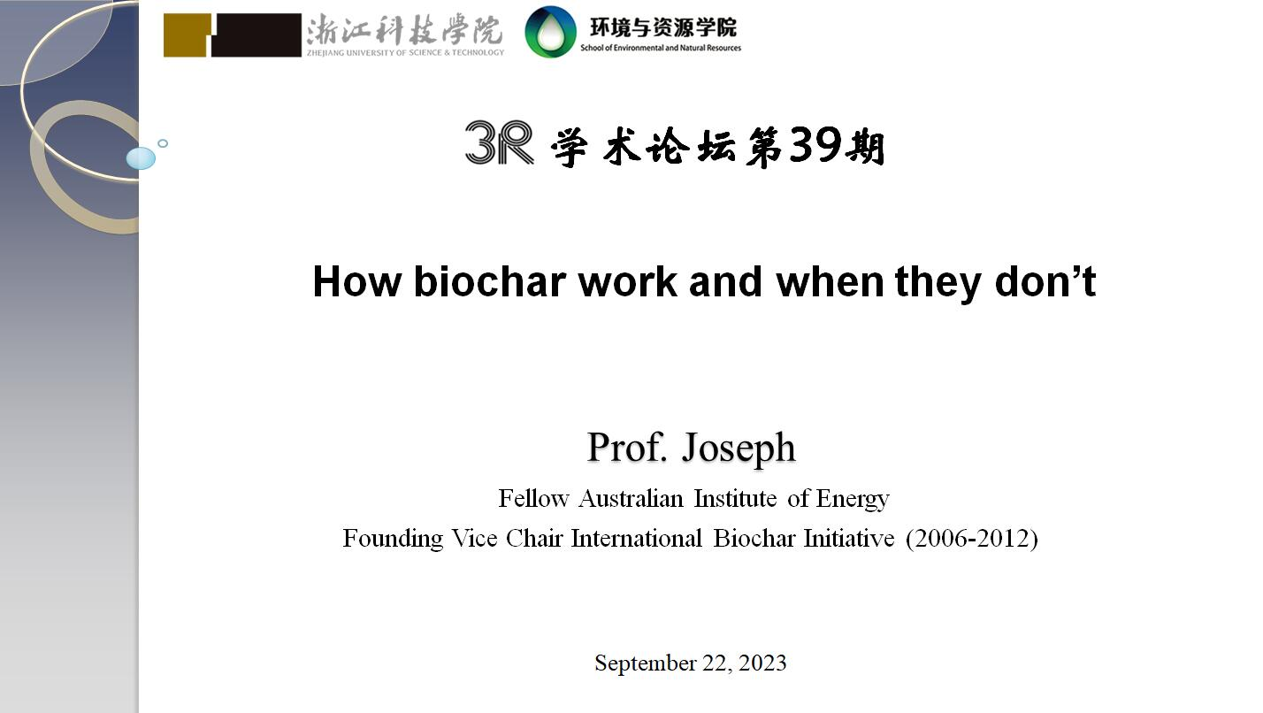 并作题为“How biochar work and when they don’t”的学术报告。本次报告会由副院长张进教授主持,学院专任教师和研究生等50余人参加了报告会。