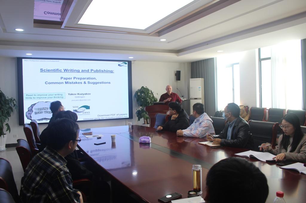 在报告中,Yakov Kuzyakov教授首先简要介绍了高水平SCI英文论文撰写的要求以及文献检索在SCI论文撰写过程中的作用,随后详细讲解了SCI论文整体框架的搭建、研究方向的前沿性需求和选题的相关依据、摘要撰写的要求、引言撰写、实验方法的表述、数据分析的方法、原理性和机理性分析以及结论凝练等相关内容,最后Yakov Kuzyakov教授与参会师生进行了互动交流,就论文准备、撰写和投稿过程中常见的问题进行了详细解答和研讨。