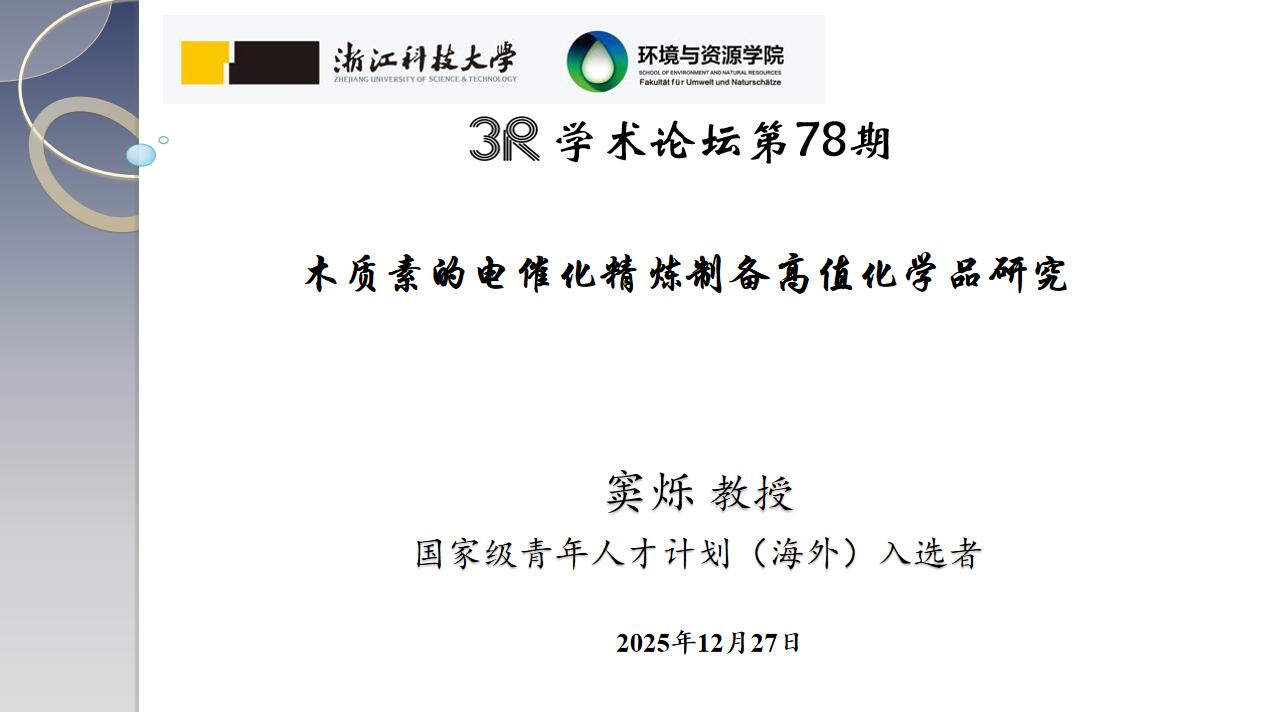 ,两位教授作为主讲嘉宾做了“3R”学术论坛第78/79期学术报告,题目分别为《木质素的电催化精炼制备高值化学品研究》和《生物质分子设计:离子凝胶、生物塑料》。报告会由翟尚儒教授主持,40余位师生参加本次报告会。