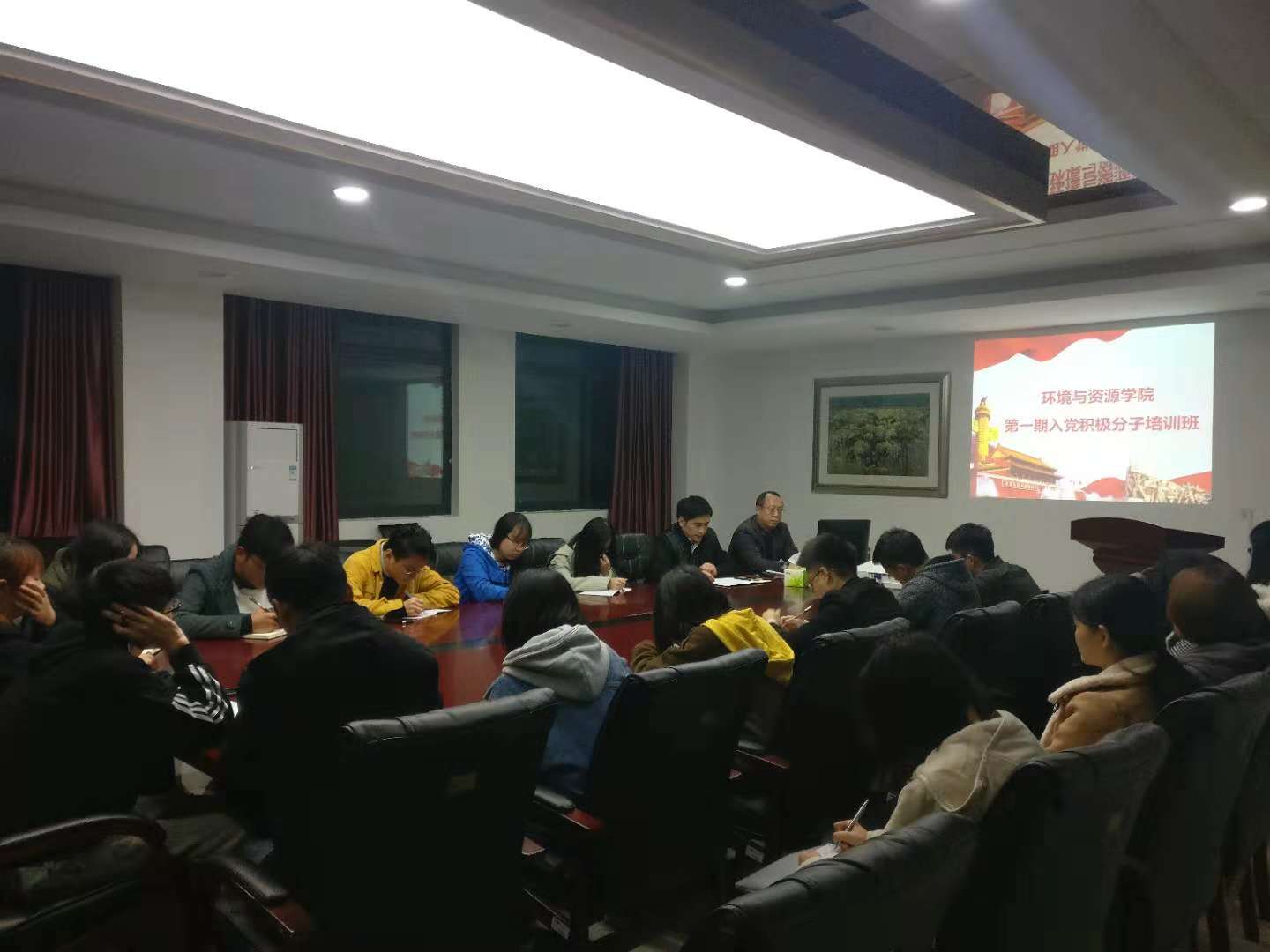 第一期入党积极分子培训班在实验大楼会议室准时开课。本期党课由漫画人