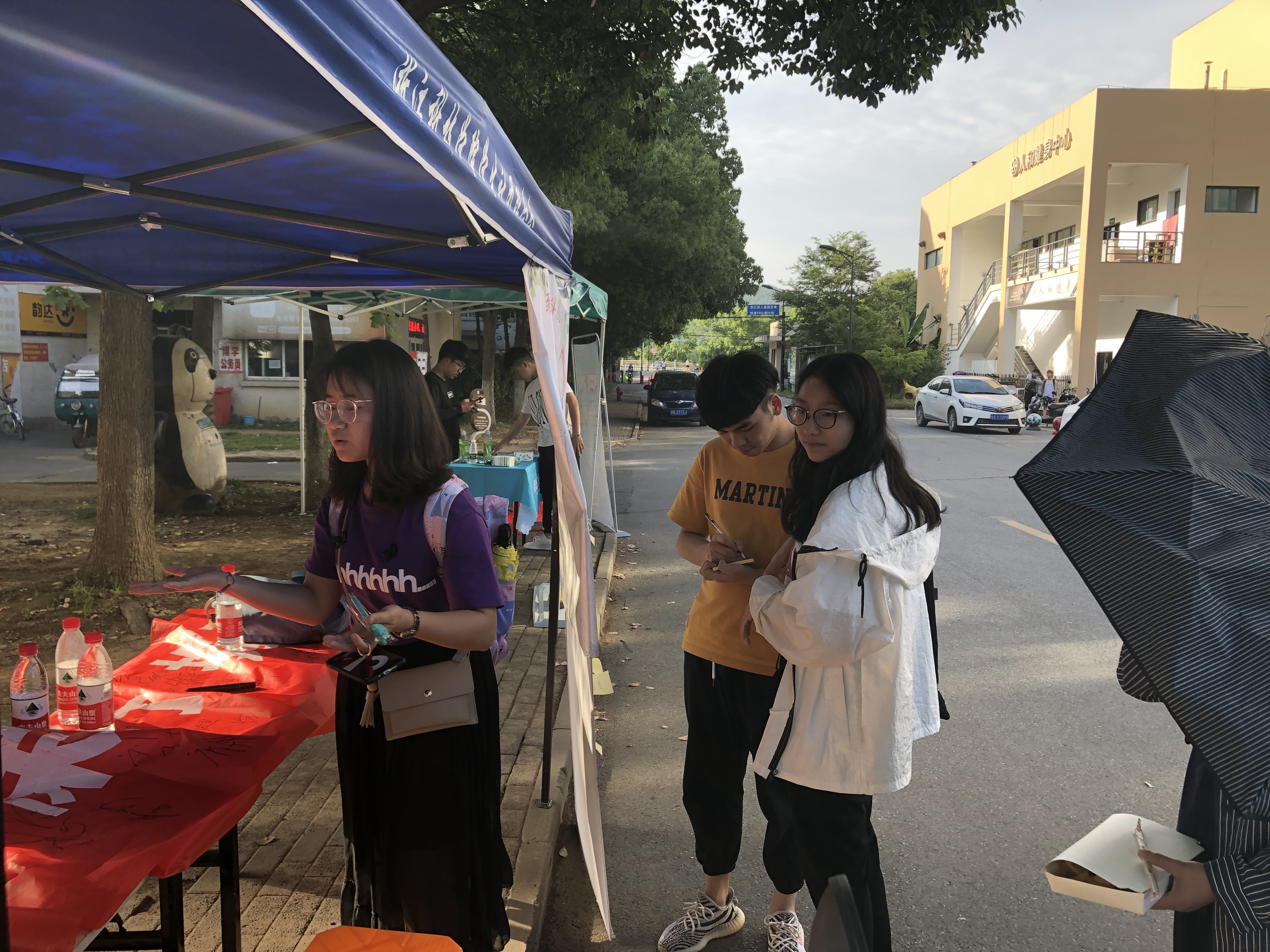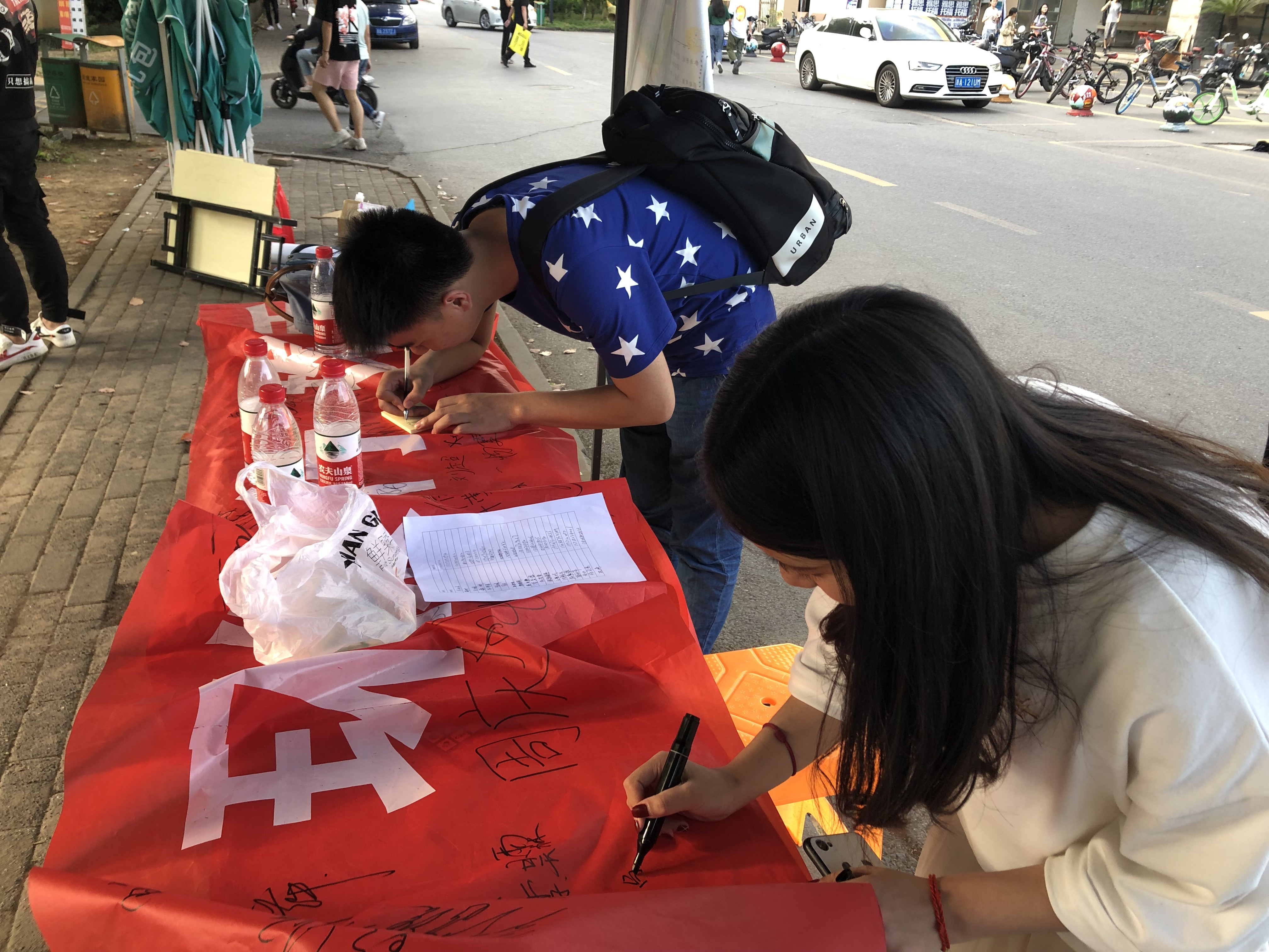 烈日当头,即使下午气温较高,天气较热,环境协会的成员们依旧热情高涨,活动如火如荼的进行着。直至下午5点半,6米长的横幅上已签了一百多个名字,建议板上也有近50份“情况反馈”。最后,参与活动的协会成员在”成果“前留影纪念,记录下这个有意义的时刻,记录下这个不一样的“5·2·1”。